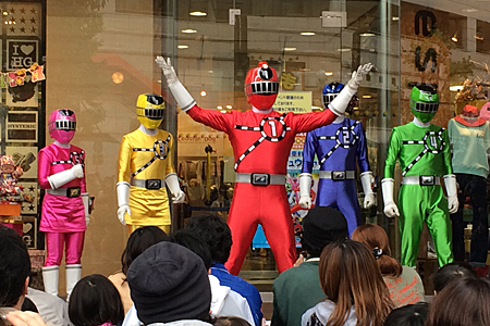 店内入口で開催されたトッキュウジャーのショーを見に行きました。屋外でのショーなので、レジャーシートを買う羽目になりましたが、子供達は夢中で楽しんでいました。あまり広いスペースではないので、人が溢れてちょっと大変そうでしたが。