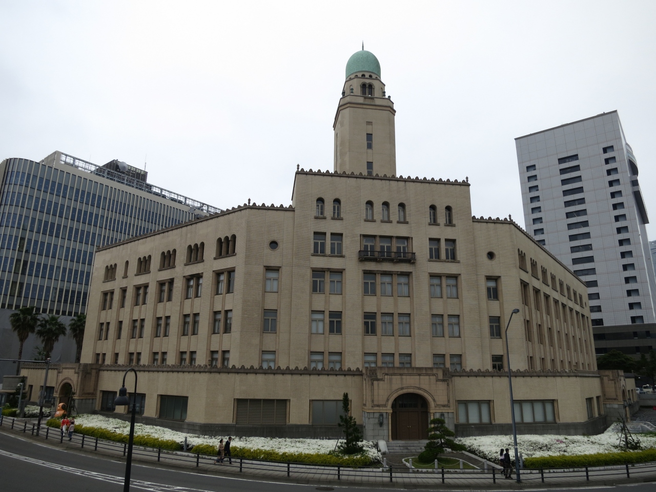 横浜赤れんが倉庫から山下公園に向って、山下臨港線プロムナードを歩いていると、右手側に大きくて立派な横浜税関の建物が見えて来ました。イスラム寺院を連想させるドームを持つ塔と西欧風外観が特徴のこの建物は、横浜三塔の1つで、塔の高さは51mと横浜三塔の中で一番高いようです。建物の前には、美しく整備された花壇もあり、横浜らしい歴史を感じられる美しい風景が広がっていました。館内の資料展示室クイーンのひろばは、自由に見学が出来るようです。