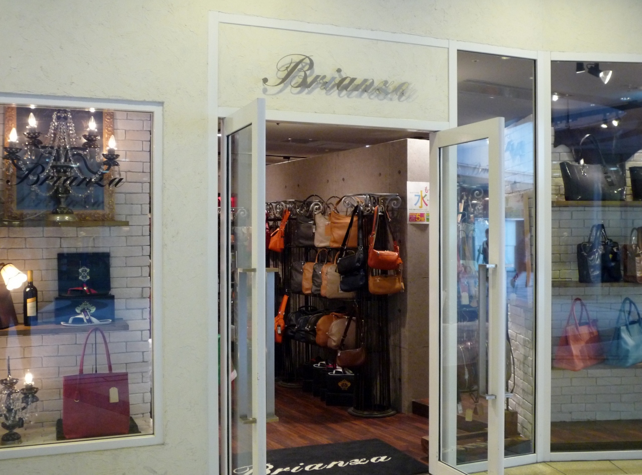 ショーウィンドーには個性的なバッグが飾られています。