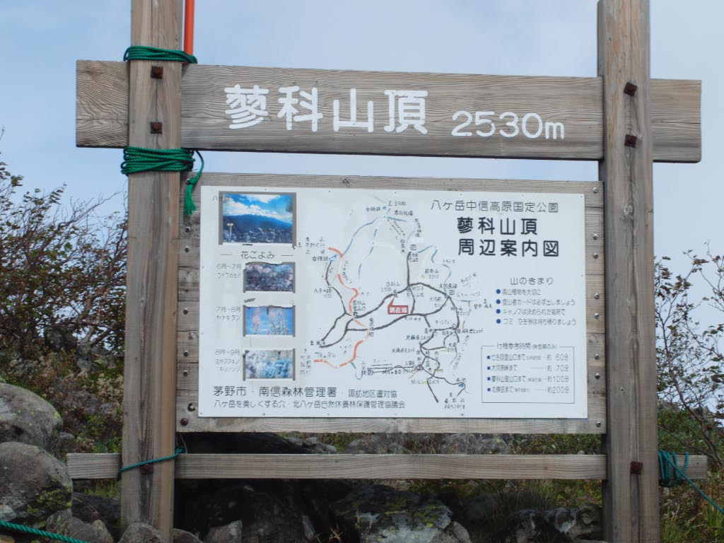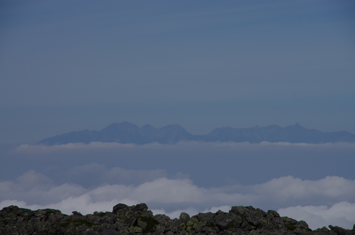 雲海で下界の様子はほとんど見えませんでしたが、八ヶ岳をはじめ南アルプスや北アルプスが望めました。