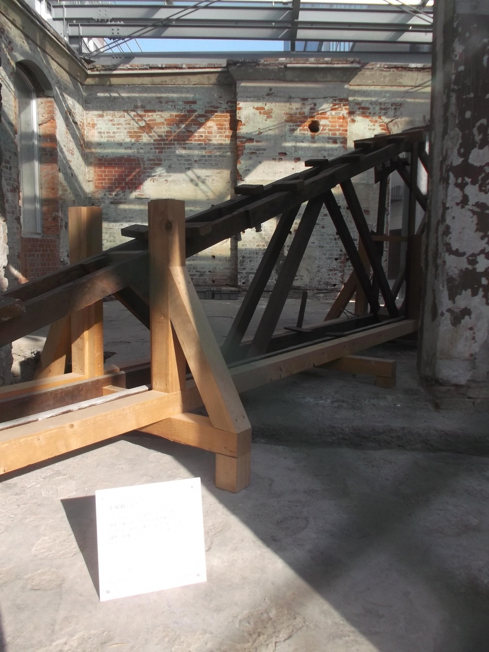 見た目、廃家のような風貌。内部立ち入りできません。アーチ型透しガラス窓から中が覗けます。レンガ造りの構造が垣間見ることができます。
