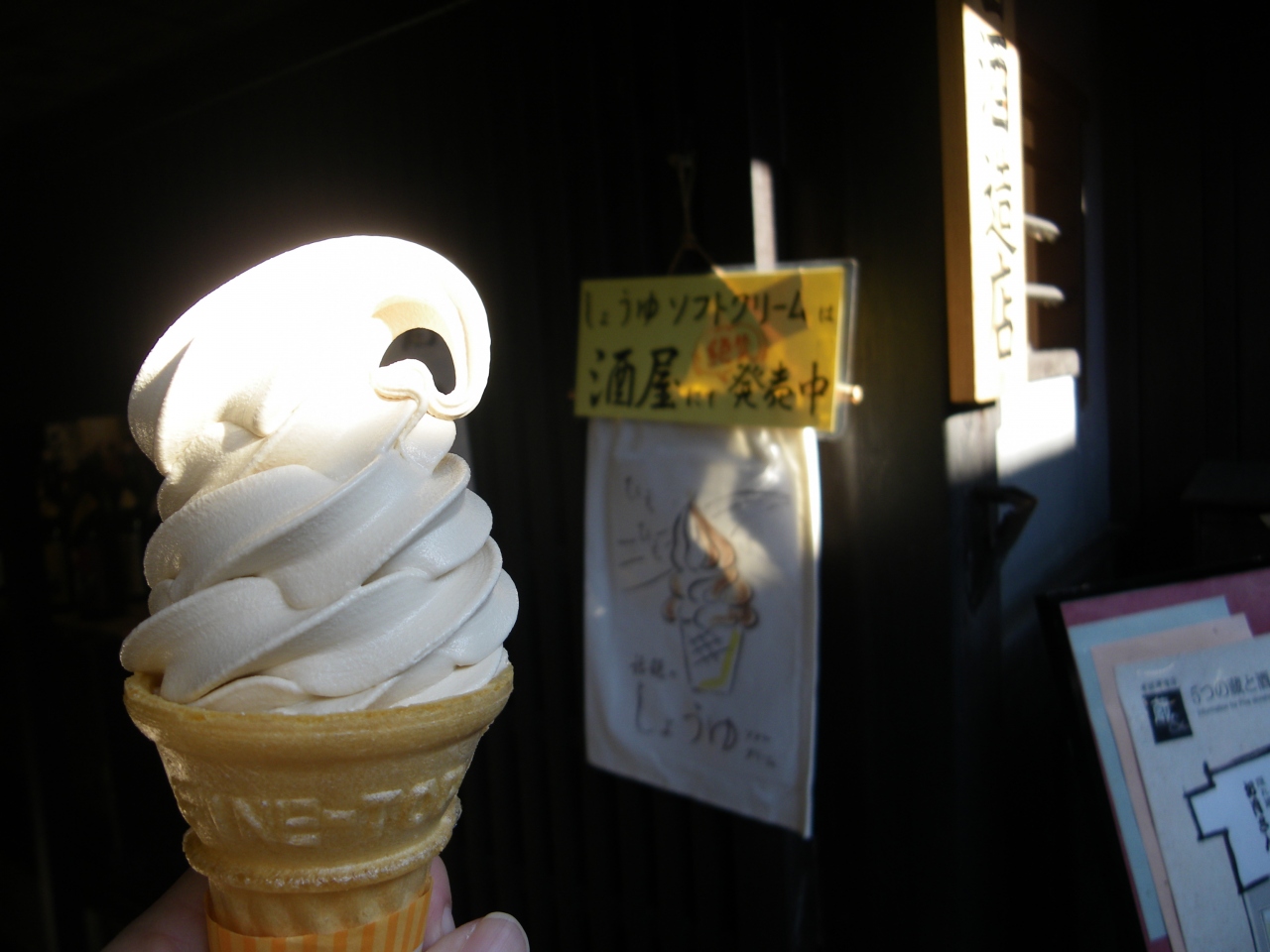 前から気になっていた「醤油味」のソフトクリーム、正直想像がつかないので怖かったのですが、この日はかなりの暑さで、散策しているだけでも暑くてつらかったので、ついに!手を出してみました。