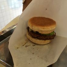 バンズは薄目ですが香ばしい。ただし注文から20分ほど待たないといけないので急いでいる方には不向き。