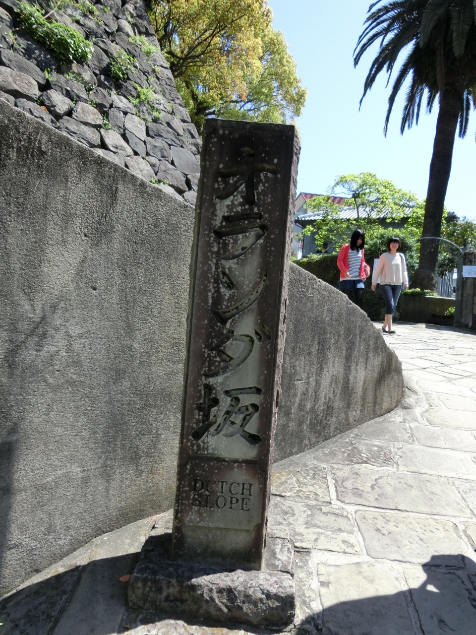 東山手、南山手周辺の西洋人が行き交った道を「オランダ坂」と呼んでいたらしく「オランダ坂」はいくつもあります。観光名所になっているのか、活水女子大学に続く活水坂は人で賑わっていました。坂道をどんどん上っていくので見晴らしが良い。特に、石畳はうつくしいです。