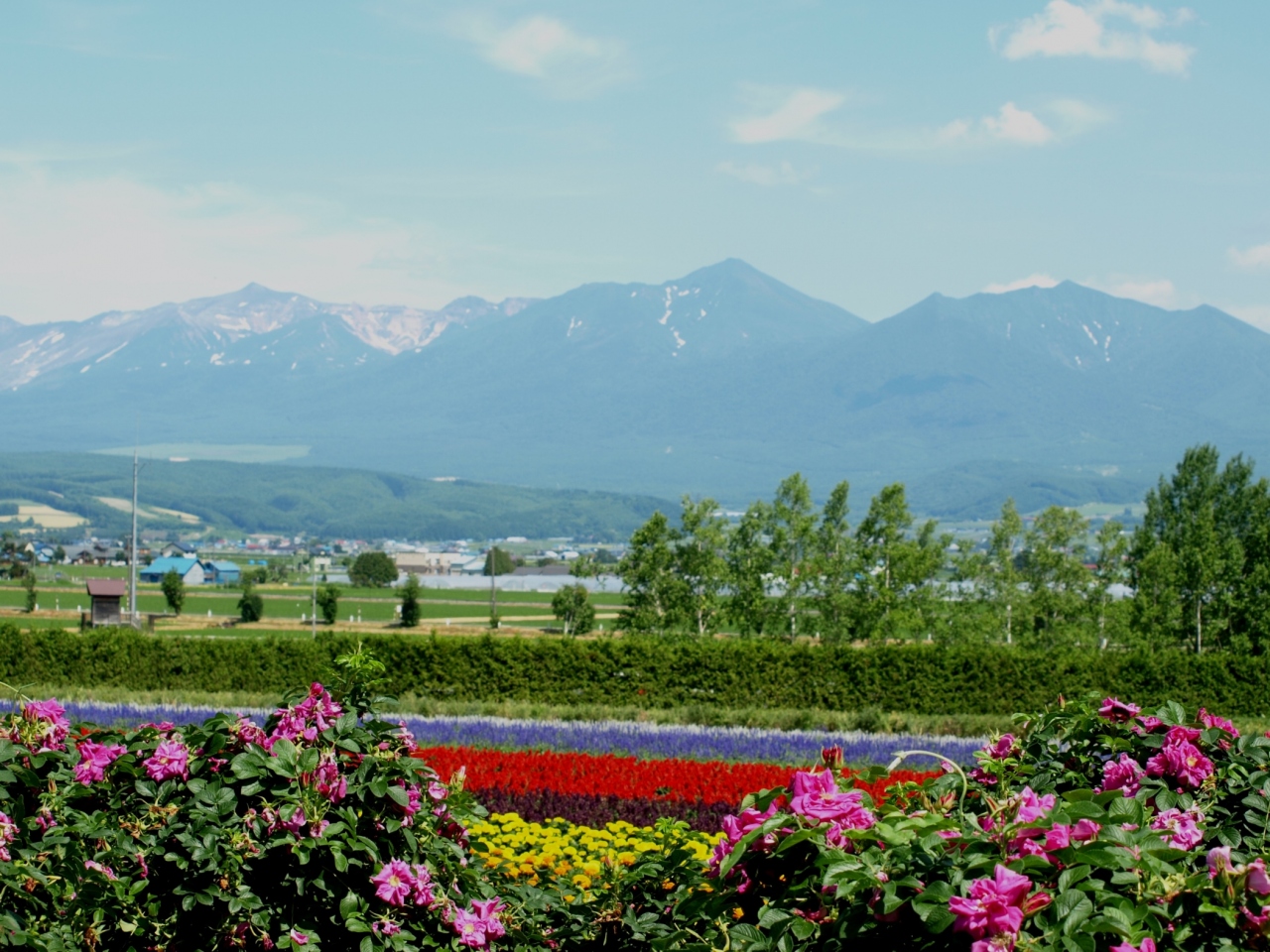 畑の中腹で十勝岳連峰を眺めながら戴いたおむすびのとってもおいしかったこと。