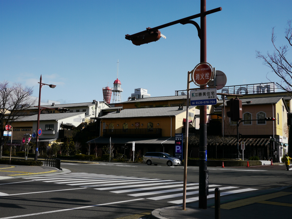 そして、やがて見えてくるアンパンマンミュージアムの壁面に描かれたアンパンマン&ばいきんまん。