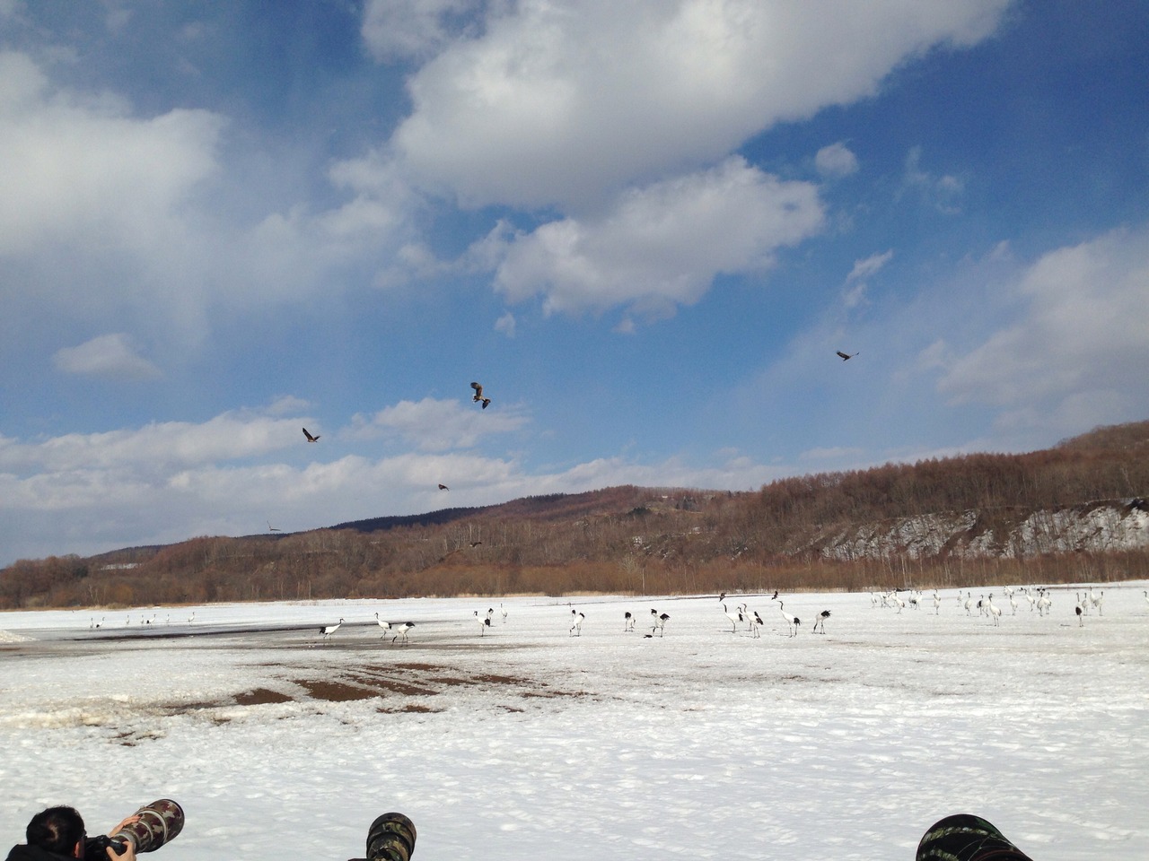野生のオジロ鷲が見られるが 実際は丹頂鶴への餌を横取りしようとしている姿で ちょっとガッカリ。。写真はカッコ良く見えるが。。
