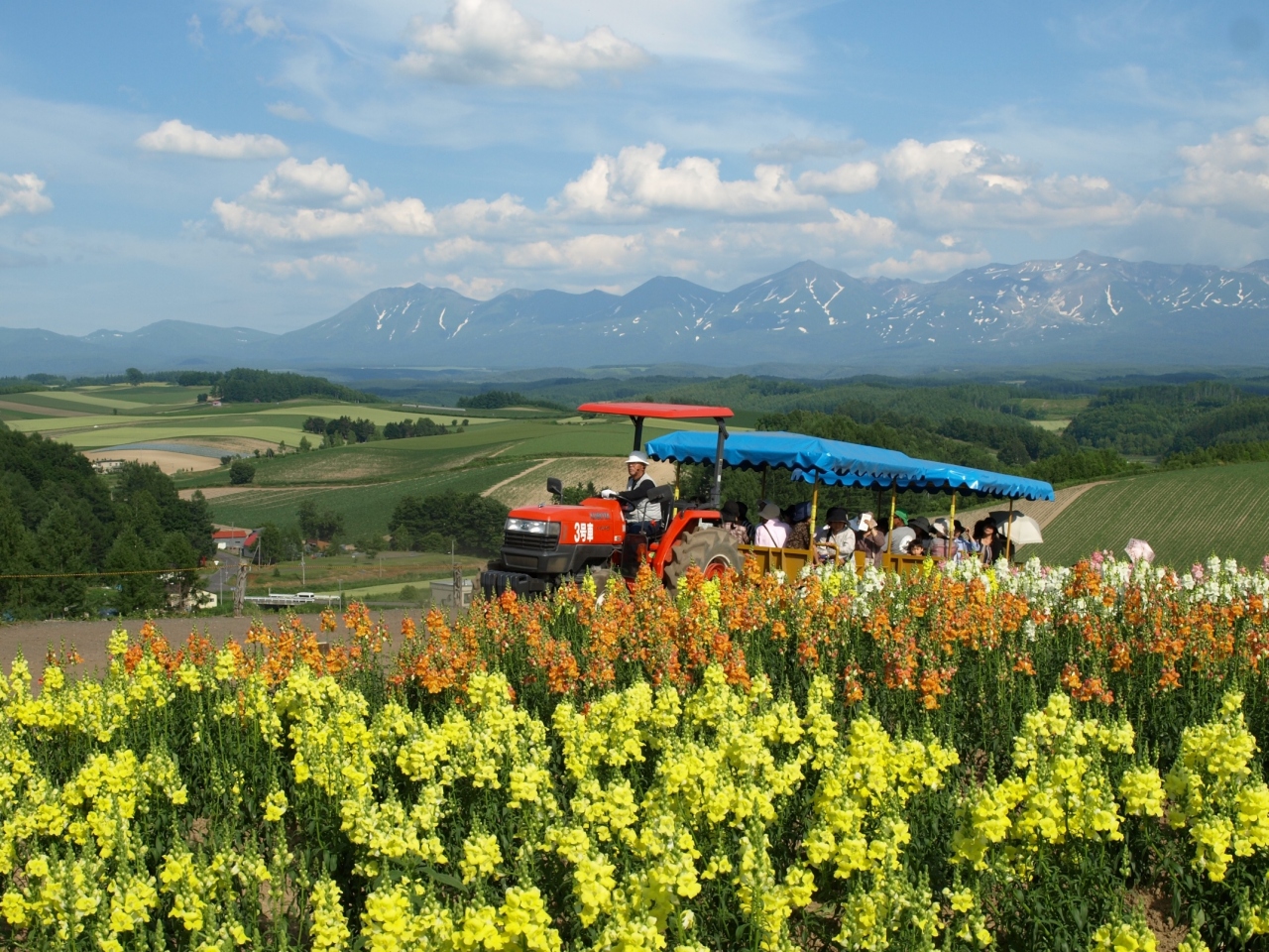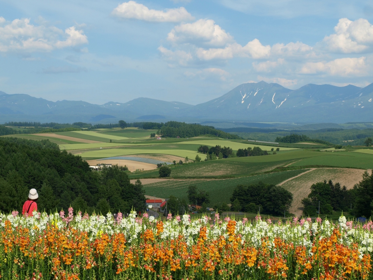 「展望花畑 四季彩の丘」は、文字通り十勝岳、富良野岳などの展望が素晴らしい『丘のまち びえい』ならではのお花畑です。