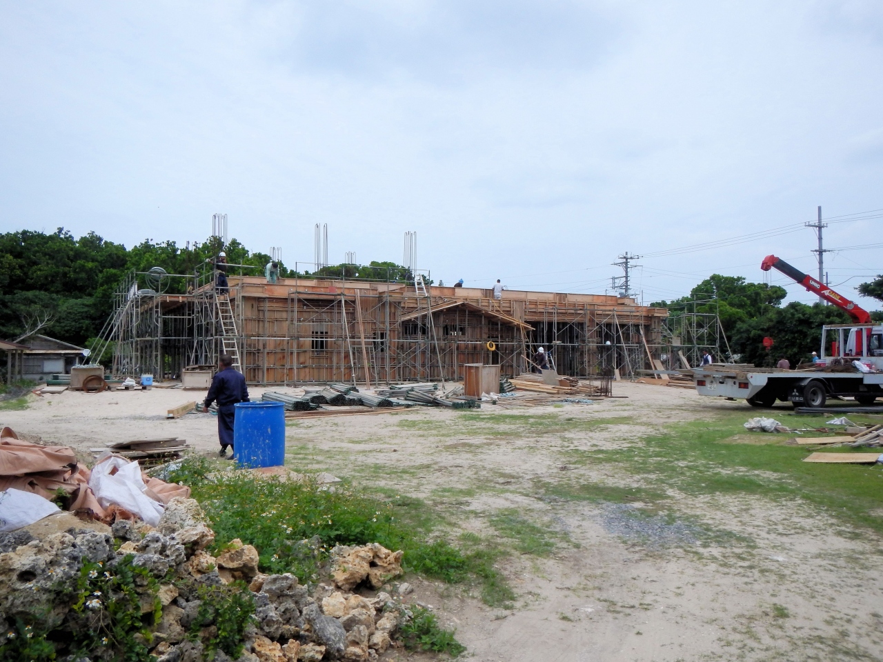 2014年5月 パナリ上地島 小学校跡が解体されて、公民館の建設工事中でした