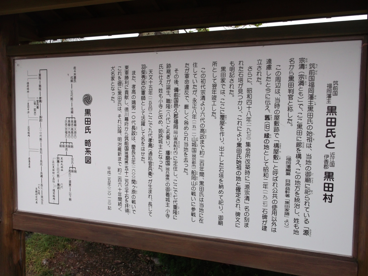 邸宅跡には黒田判官を祀る御廟や先祖の地を