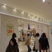 白亜の外観が目立つお店で、明るい色のファッションアイテムや雑貨がたくさん売られていました。