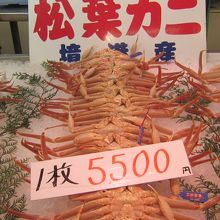 お昼前でしたが特価品の松葉がに(足が欠けてるとか)はかなり安く売られていましたが、やはり早い時間に買いに来るお客さんが多いようで、売り切れているお店もありました。