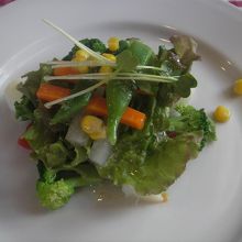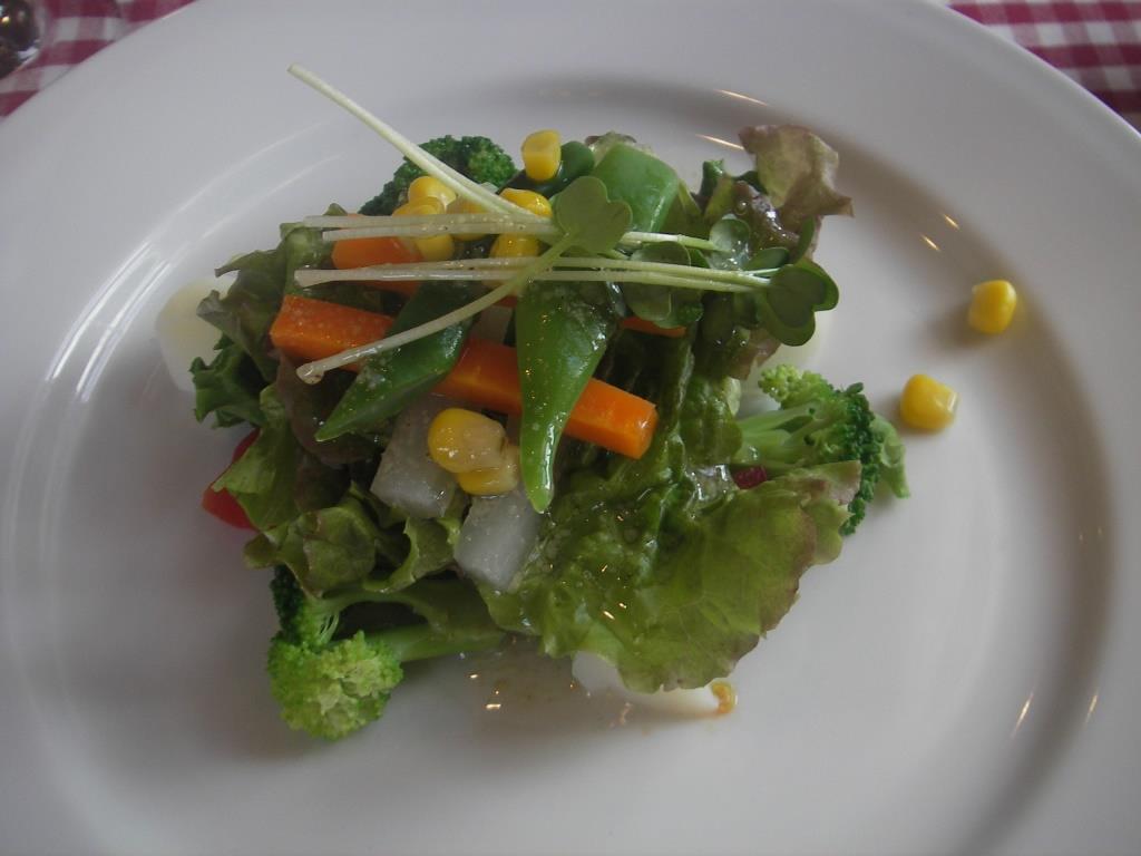 玉ねぎの甘みが上品なスープと一緒においしく野菜がいただけました。