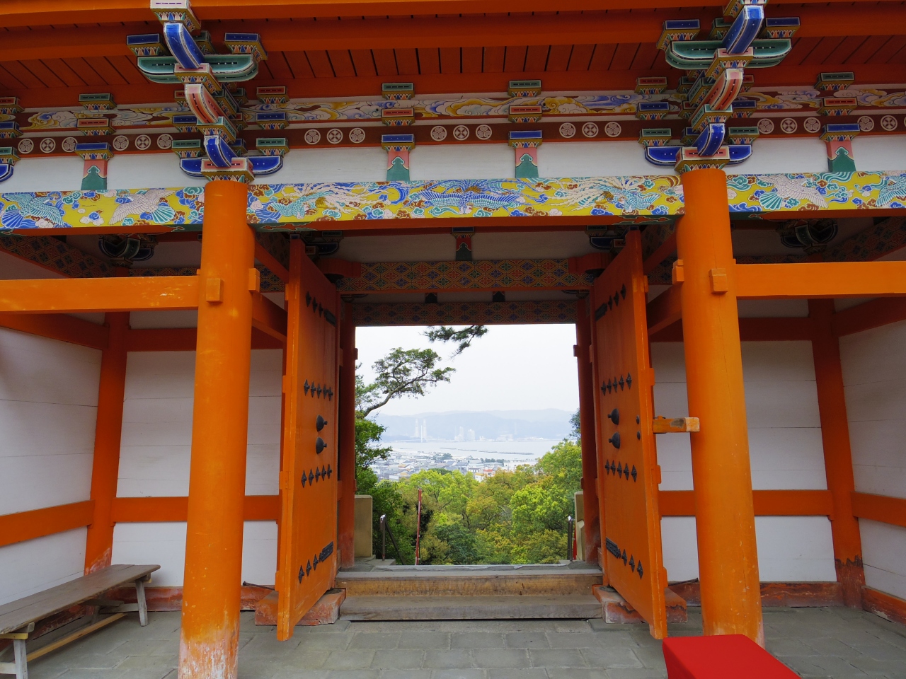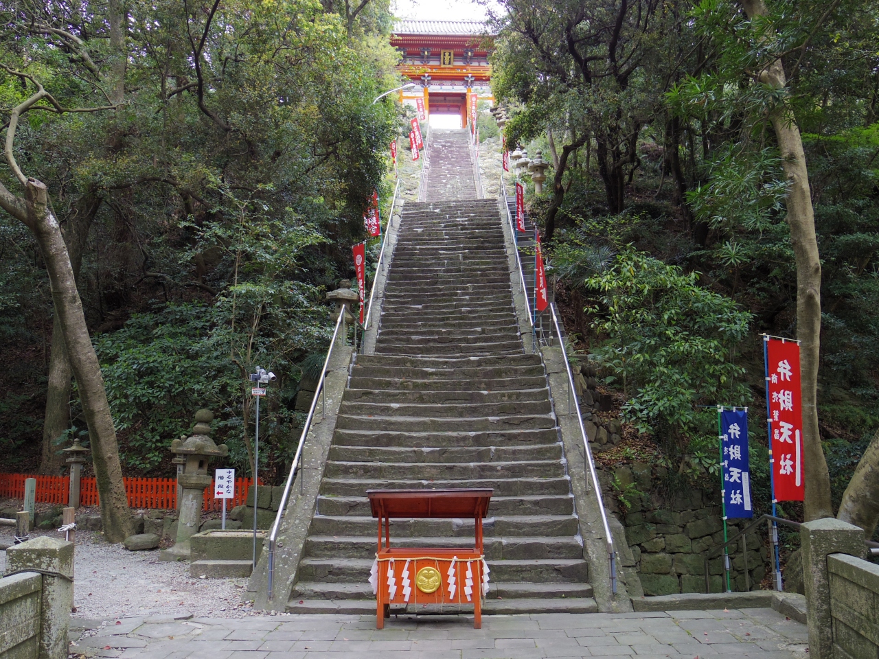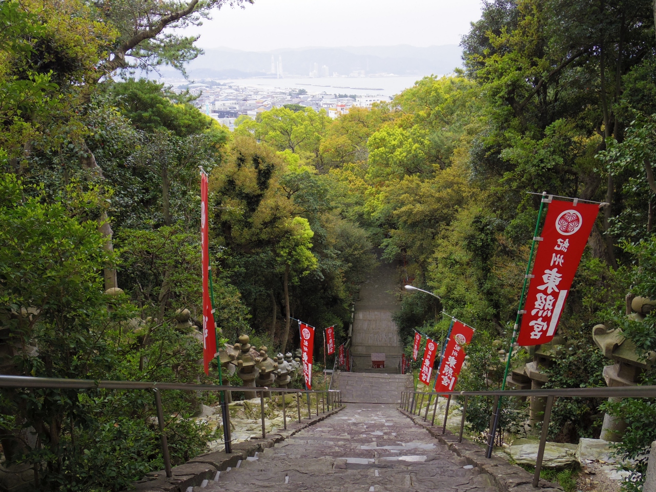 和歌山一人旅で訪問。和歌山市駅からバスで20分くらい。バス停降りてから徒歩10分程度。紀州東照宮と言われているので期待していたが、狭い。建物の中に入るには有料(500円)。しかも説明者付き。自由に中を閲覧できない。人もまばらで3~4人程度。108段の階段は休みつつ登ればそんなに苦ではない。登り切った後の景色は海まで見渡せて爽快。下りはゆるやかコースを選んだが、こちらは1段1段は低いが足場の石がデコボコで距離もあり楽ではなかった。