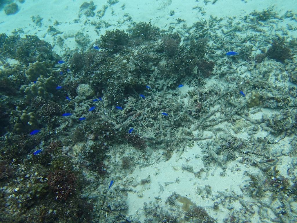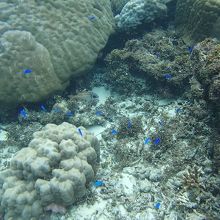 ウェットスーツを着込んで水中カメラを持ってシュノーケリング。足が十分届くところでもきれいな魚や珊瑚礁を見ることができました!