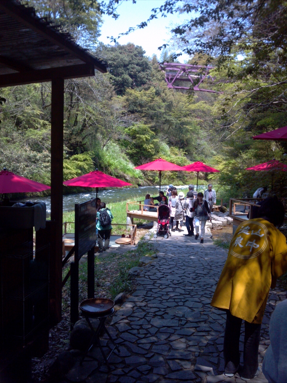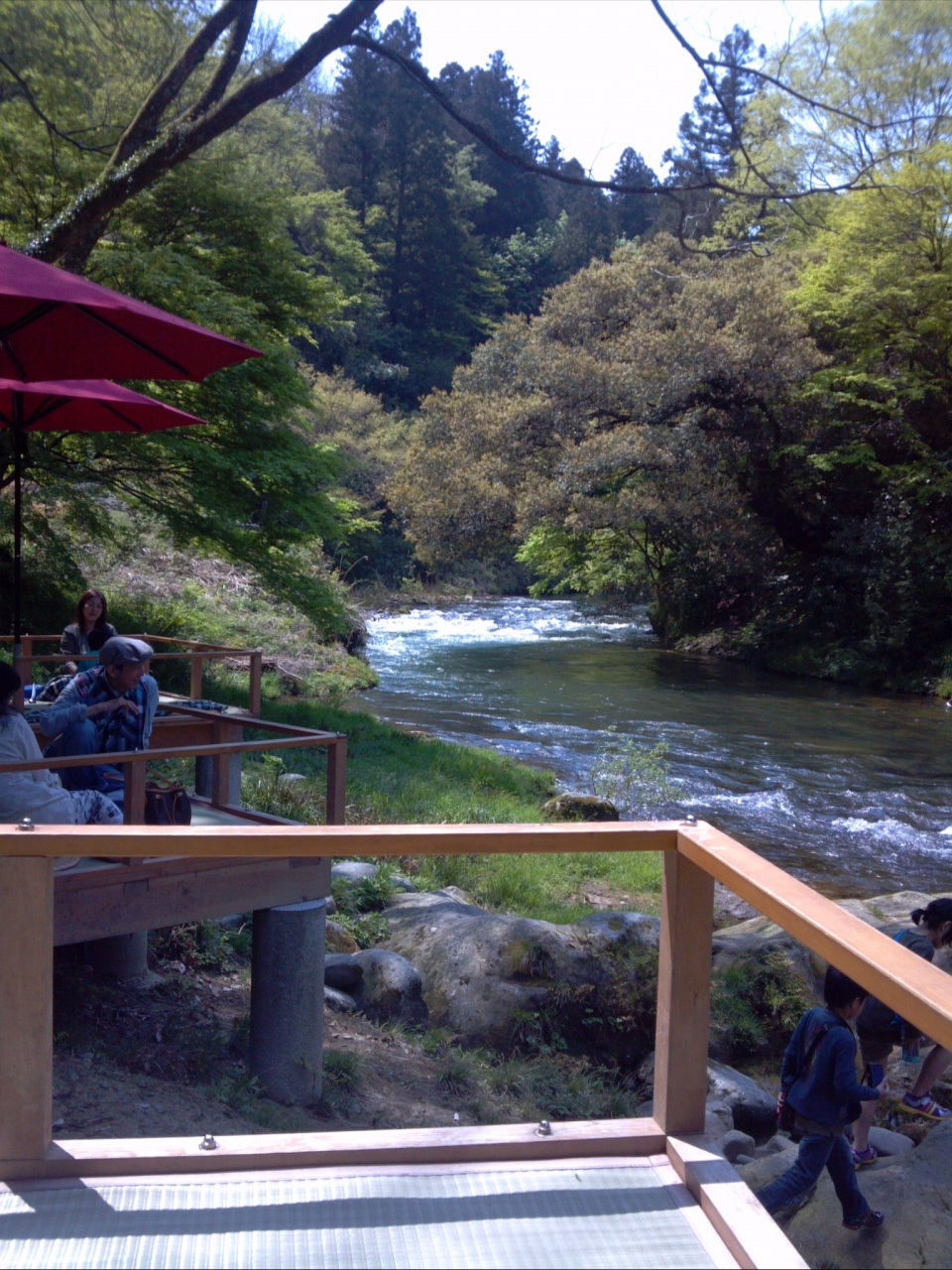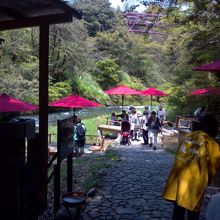 散歩途中に渓谷の川床でお茶とお菓子を食べられるというのはいいと思います。