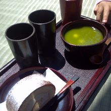 道場場六三郎氏考案「川床ロール」や「冷製抹茶しるこ」があります。
