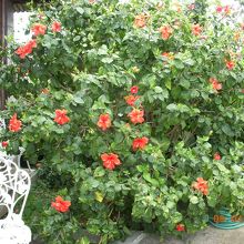 蜜をなめて造花の花に戯れてます。園内は散歩散策の坂道がけっこうあり、年寄り向きではないかも?植物の通路がたのしめます。