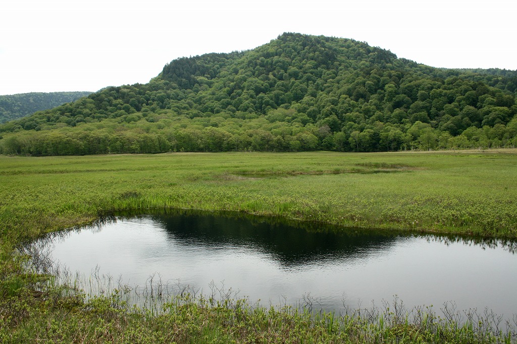 点前に牛首分岐という四つ角があるが、このあたりは真っ平ら、一面に地塘が広がり、いかにも尾瀬らしい風景が広がる。