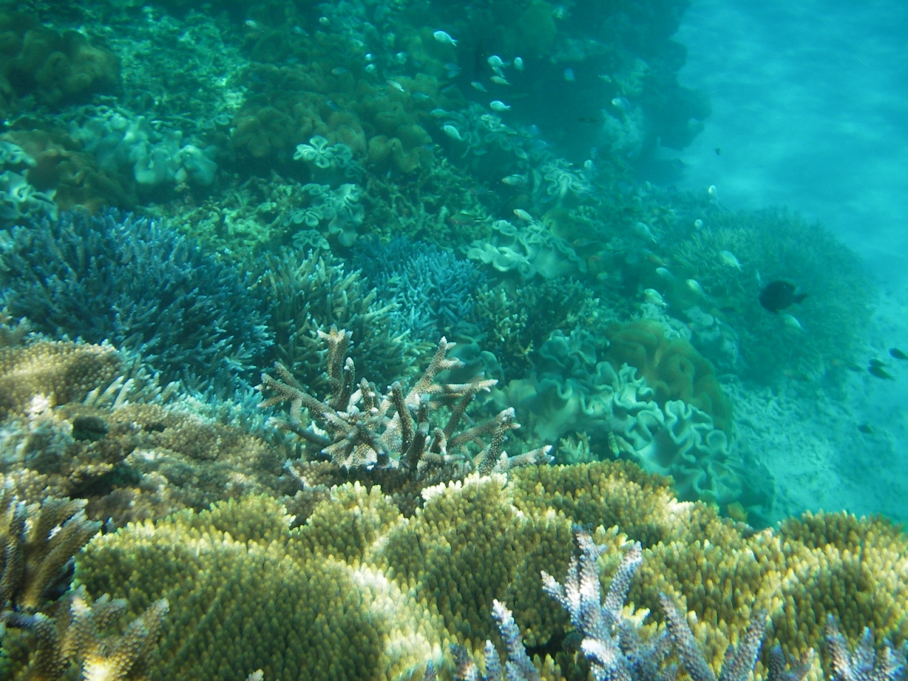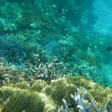 潮と天気に影響されるので、口コミはいろいろあるようですが、干潮に近い時間で天気の良い時は、水面を移動するだけの初心者シュノーケラーでもスケールの大きい綺麗なサンゴ礁を見ることができます。