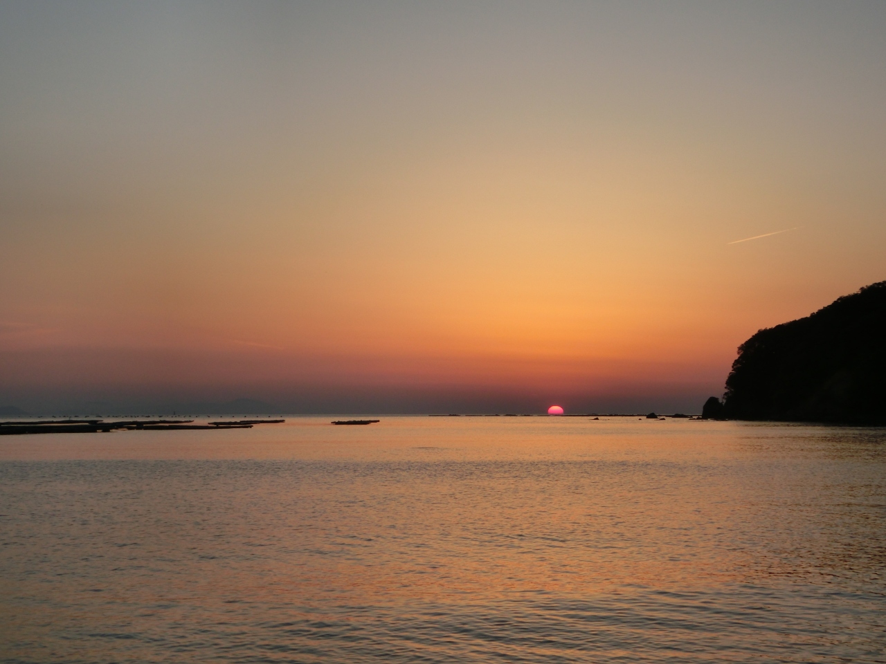 エクシブ鳥羽に宿泊した早朝、友人3人で1時間程、パールロードを散策してきました。午前5時すぎですが、車の往来が結構ありました。ちょうどパールロードから海に下りた時に、海から昇る朝日がとってもきれいでした。