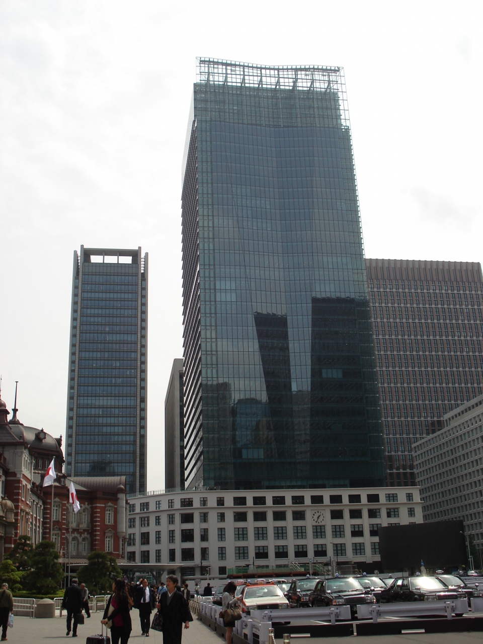 長く親しまれていた「東京中央郵便局」を大きく衣替えして作られた。高い近代的なビルの全面に白い低層階があって、それは以前の中央郵便局を一部残した部分。新旧が美味く調和してほかのビルとは違い、親近感を感じるビルとなった。