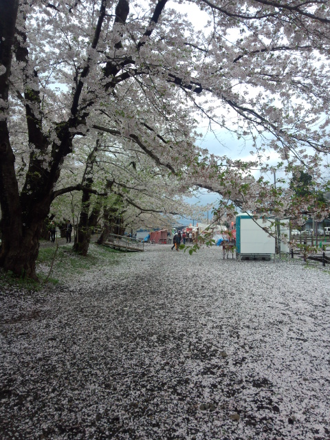 私たちは5月1日に行ったのですが、枝垂れ桜はもうほとんど終わっていました。(涙)ただ、ソメイヨシノはまさに散り際で、道は散った花びらで薄ピンクに染まっていました。これはこれで、見事でした!でも、やっぱり枝垂れ桜も見たかったなあ~。