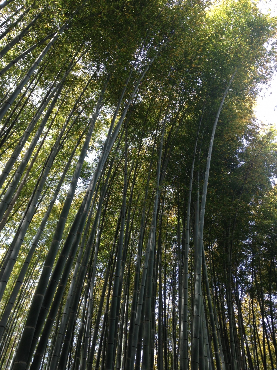 上を見上げても竹だらけです。人気の場所なだけあって観光客も多く、