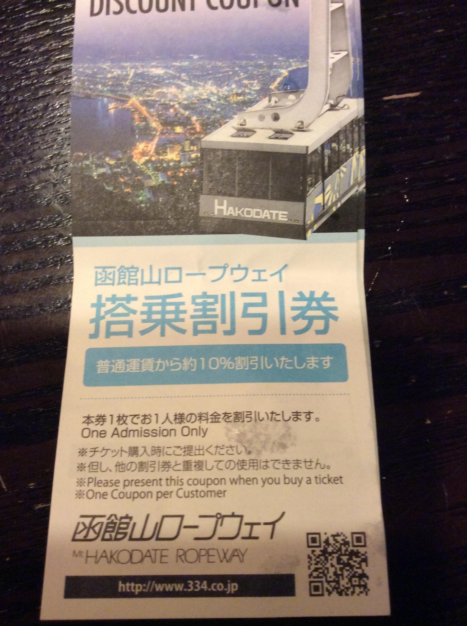 ホテルのフロントで割引き券をもらい、函館山ロープウェイ乗り場までは歩いて行きました。