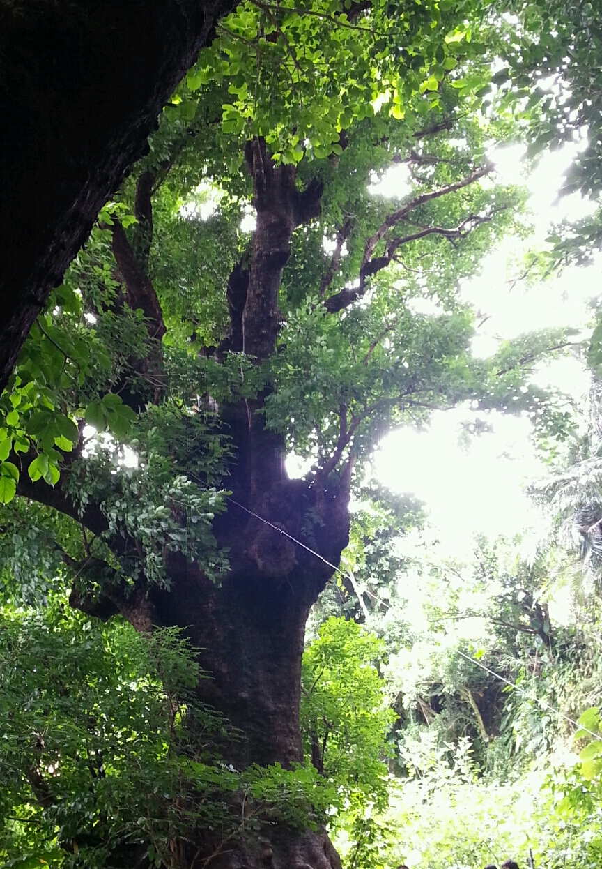 首里城の帰りにパワーをもらいに石畳の階段をおりて行きました。民家の奥にあるこちらのアカギ。日陰が気持ちよく、人もまばらで、つかの間のリラックス。帰るまえに知人はかならずこちらでパワーをもらって明日への活力にしているそうです。