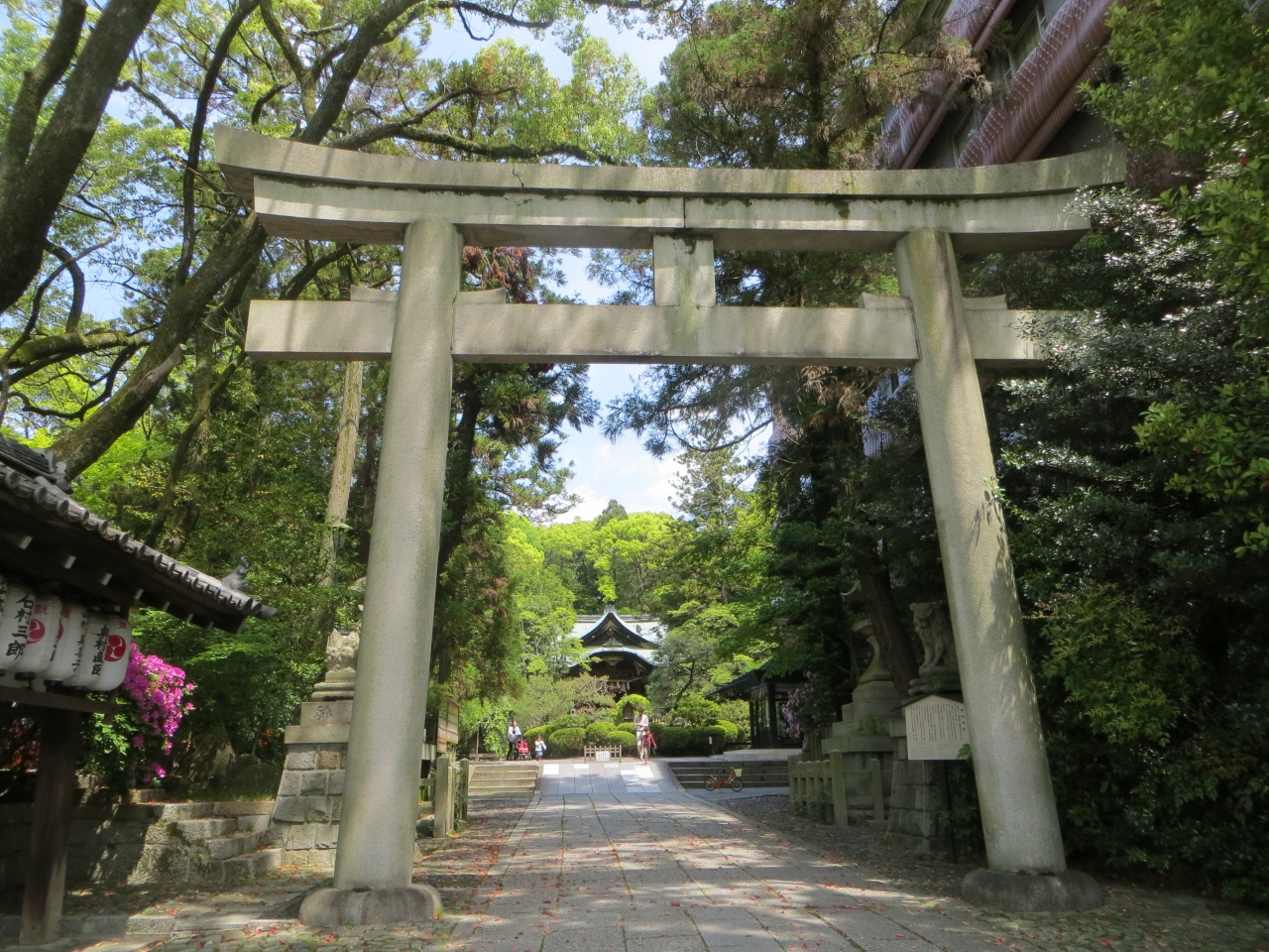 桜の時期が終わり新緑の季節。蹴上げ浄水場の一般公開に合わせて岡崎神社から金戒光明寺、真如堂、哲学の道、南禅寺のルートで出かけました。93番の市バスで岡崎神社で下車して徒歩すぐ。観光客はまず訪れない場所なので境内は静寂に包まれていました。能舞台があるのに気づいたのですが埃をかぶっていて使われていなさそう。もったいない。