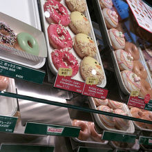 土曜日の夜9時頃の訪問だったが、10人くらいの行列。イースターの季節なので、それにちなんだ商品も出ていて、また夏に向けたドーナツの上にアイスが乗っているタイプのものも出ていてテンションがあがる。