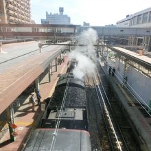 列車案内を見たら、テレビの旅番組でよく見かけるSLばんえつ物語号だった。