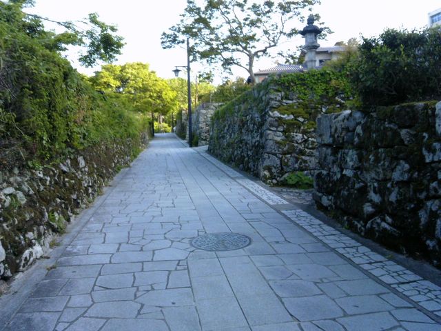 穴太衆積みの石垣の説明版は京阪の坂本駅から上がるメインストリート沿いにたってましたが、車が1台通れるぐらいの脇道に入って両側が石積みの道の方が雰囲気があってよかったです。この周辺はそういう小道があちらこちらにあるので、自分のお気に入りの石垣を探すのも良いのではないでしょうか?