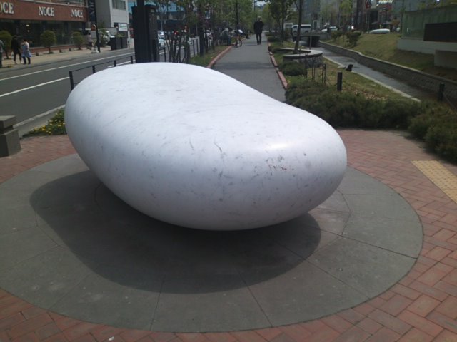 創成川公園内にある白色の怪しげな物体、何かと思って近づくとこちらの彫刻作品でした。巨大な繭のような丸みを帯びた作品で、色々なイマジネーションを掻き立てられる作品だと思います。尚、同じタイトルで少し離れた位置に二つの作品がありますので、”片手落ち”とならないように、両方を是非お見逃しなく…。