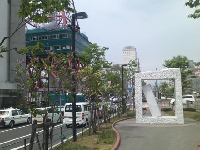 こちらの作品は、創成川公園沿いに並ぶ彫刻作品群の中でも、最もテレビ塔に近い側にあります。名前からしてちょっと意味深で怪しげですが、白を基調としたスタイリッシュな作品で、テレビ塔を背後に撮影するとより素敵です。作者は立地も考えながら作品を製作したのかな、等と、色々と想像も膨らみました。