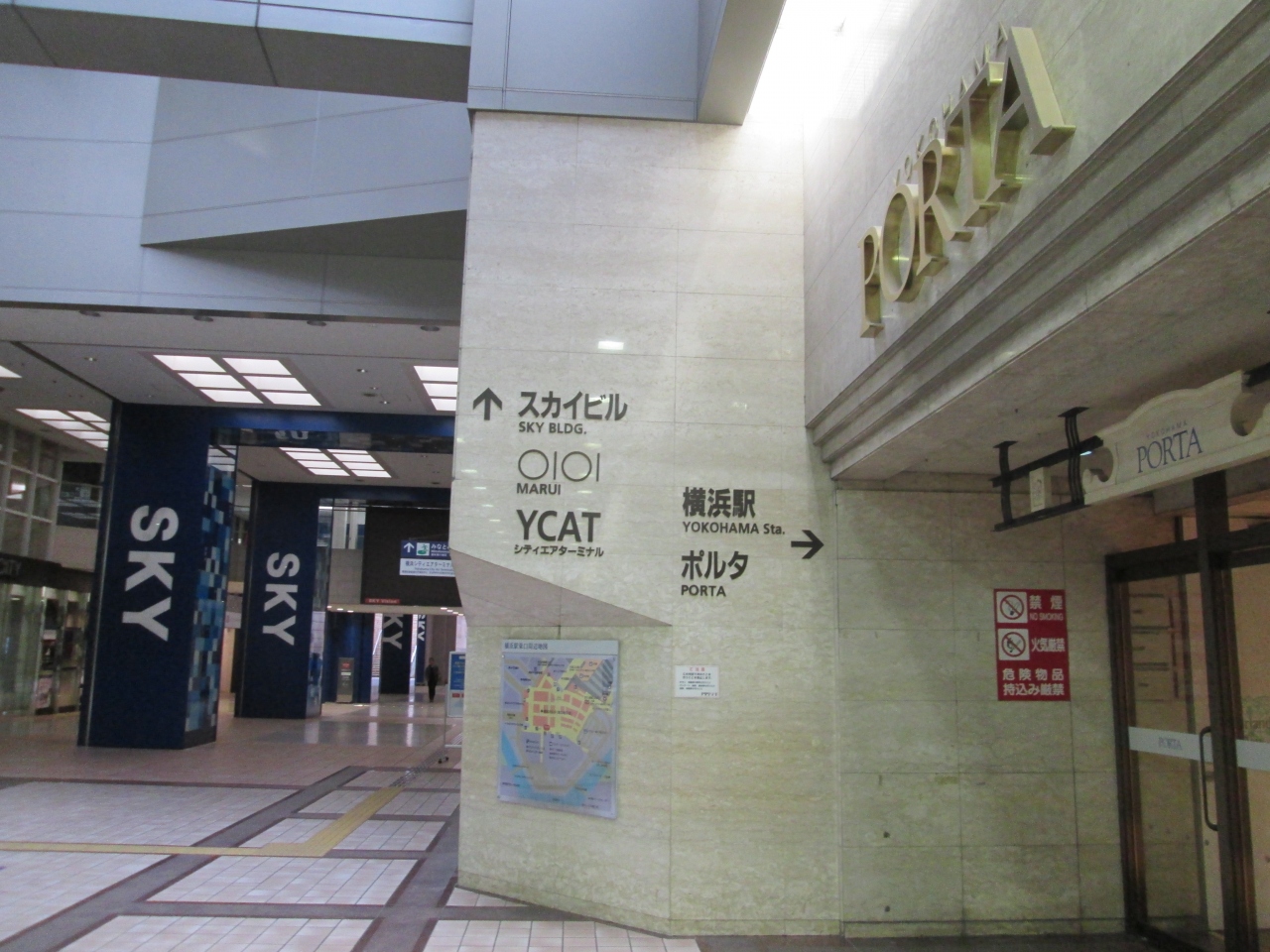横浜駅からYCATに移動する際、利用する地下街です。地下街にはエスカレーターが完備されており旅行用の大きい荷物があっても平気です。床は比較的凹凸がなくキャスター付きのバックであれば楽に転がすことができます。