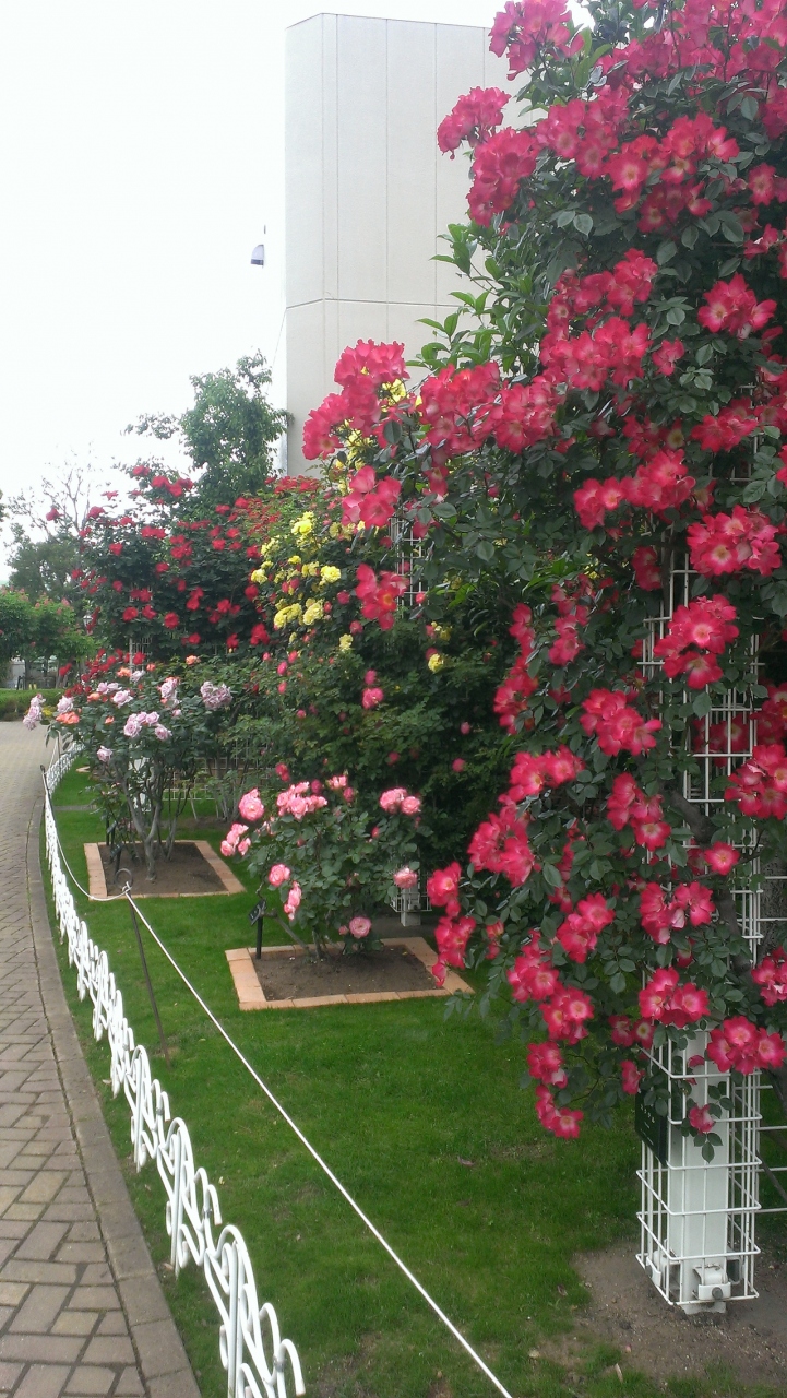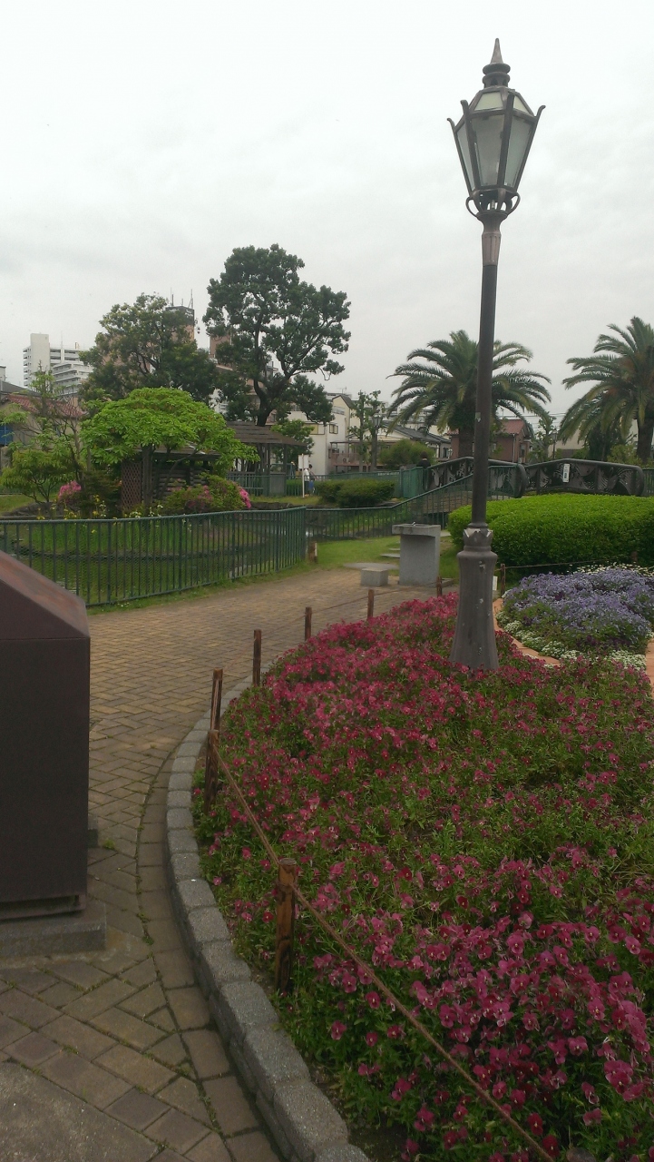広い公園で、芝生、池、幼児向けの遊具があり今の季節はバラが咲いてとてもきれいです。
