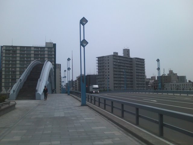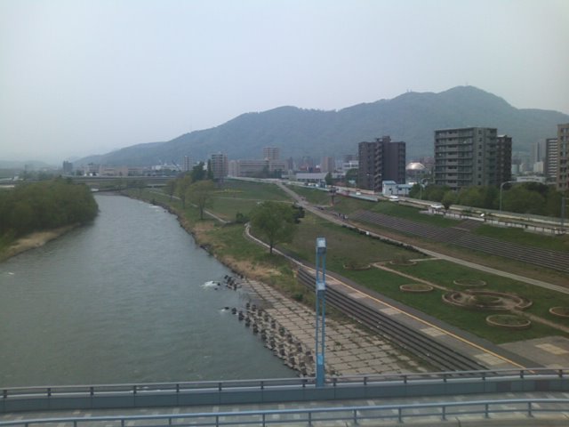 この橋は、同名の地下鉄駅がある位、札幌を代表する橋の一つですが、車道の他に歩道側には弧状の階段が設置されていて、上部からより高度間のある豊平川の風景を楽しめるようにレイアウトされています。個人的には、札幌在住時代にここの階段の上り下りでトレーニングしたものですが、豊平川沿いのサイクリングロードも合わせて、多角的なトレーニングにも非常に使える橋だと思います。