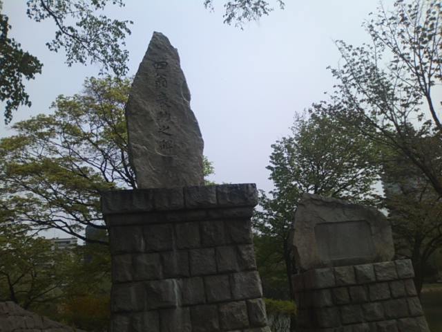 記念碑の形態としては、通常はメインの部分が大きくて、脇役の台座は小さめ、ということが多いかと思いますが、この碑の台座はとても立派で驚かされます。個人的には、大通公園内の開拓記念碑に似ているデザインだなと思いました。場所は、地下鉄中島公園駅から豊平館方面へ向かう途中の左手、菖蒲池岸近くにあります。