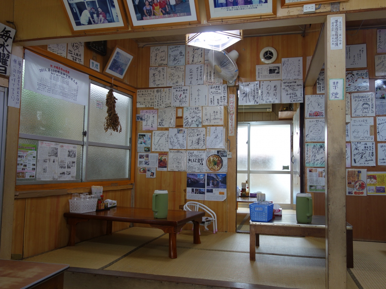 こんな田舎(失礼)なのに,韓国人観光客に大評判のお店のようです。当方も韓国人カップルと同席しました。ハングルで書かれた色紙もかざってありました。芸能人がたくさん来て色紙を壁に貼りまくるのでよけいミーハーに人気があるのでしょう。うどんはそれなりにおいしいので,ここまで来る価値はあるでしょう。