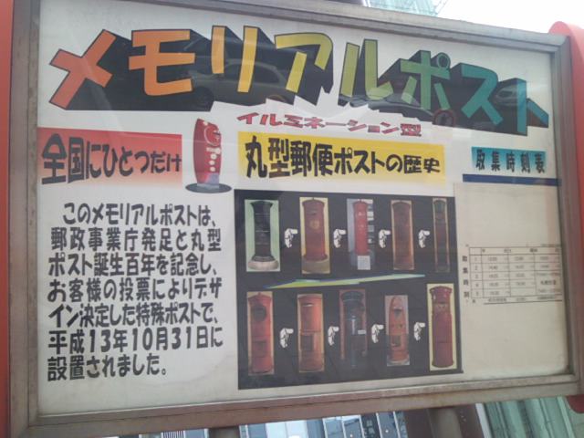 札幌駅が大々的に改装されてから、もう10年以上の歳月が経過しましたが、南口にあるこちらの広場は、イベントが開催されていない時はだだっ広さだけが目立って、やや殺風景に感じることがあります。そんな時にネタとして注目して頂きたいのは、イベント広場の南側の道路沿いにあるメモリアルポストです。このポストは郵政事業庁の発足と、丸型ポストの誕生100周年を記念して、一般公募で決まったデザインで平成13年に設置されていますが、勿論現役のポストですので、郵便物を投函しても大丈夫です。