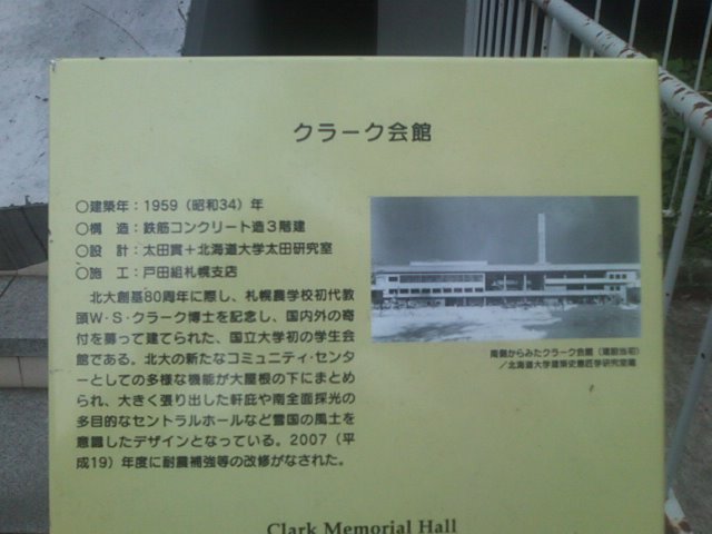 こちらの施設は、通称クラ館と呼ばれて親しまれていますが、元々は大学の創基80周年を記念して建てられました。意外と知られていないのは、国立大学の学生会館としてはここが最初だったということです。基本的に学生会館の側面が強いですので、サークル活動のイベントなどがよく開催される場所ですが、中央部の休憩ブースやクラーク食堂など、外部の方も立ち寄り易い北大内の施設の一つかと思いますので、是非足を運んでみて下さい。