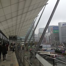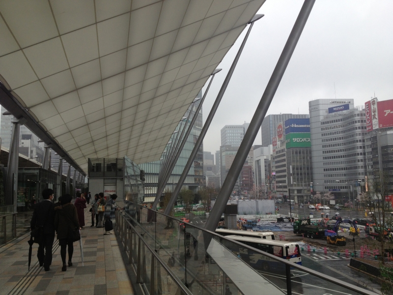 出来上がった大きなデッキ、「グランルーフ」とはまさにこのペデストリアンデッキを指すのかと思いきや、何のことはない、従来からある飲食街と新たにできた飲食街を総称したようなもの。