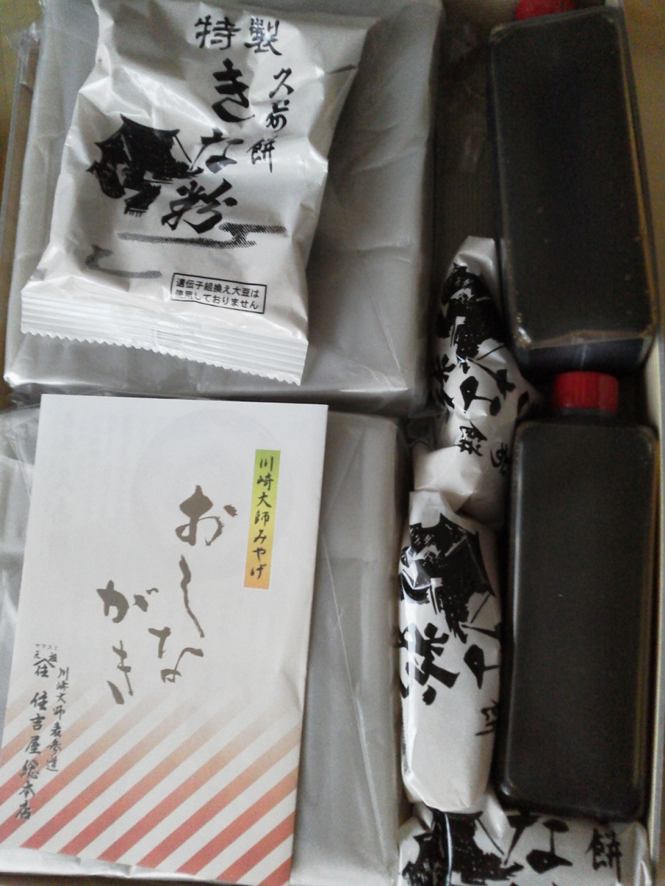 言わずと知れた川崎大師のくずもち屋さんです。川崎にはあまり名物はないので、お土産と言えばこれになるのですが、日持ちがあまりせず、冷やすと風味が落ち、かなり重いので、長距離移動はおすすめしません。でももっちりしていて美味しいです。