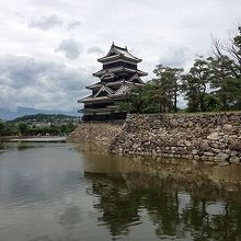 お堀に水がはっているので、かっこよくみえます。2つ並んで見える側もカッコイイので1週まわって見ることをおすすめします