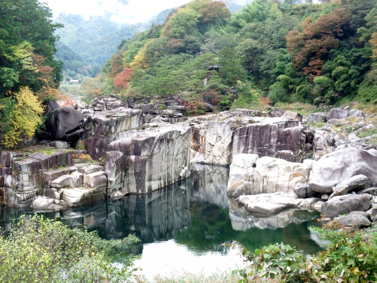 「寝覚の床」は、木曽川の激流が花崗岩の岩盤を長い間に浸食してできたもので、国の史跡名勝天然記念物に指定されています。