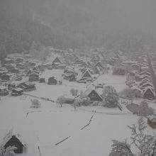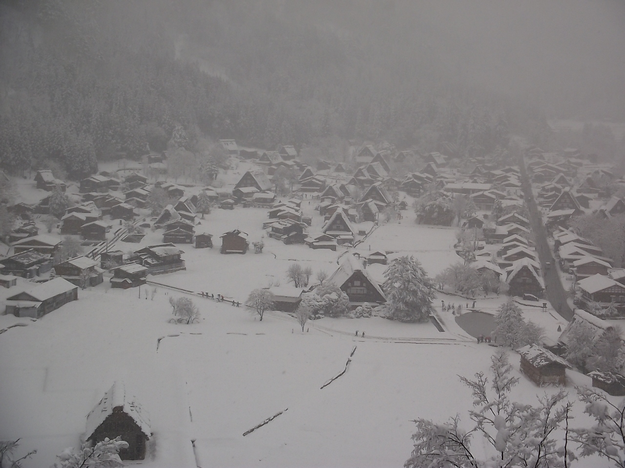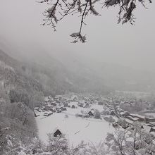 展望スペースはあまり広くないが、小さくなった合掌造りの家々を一望できる。