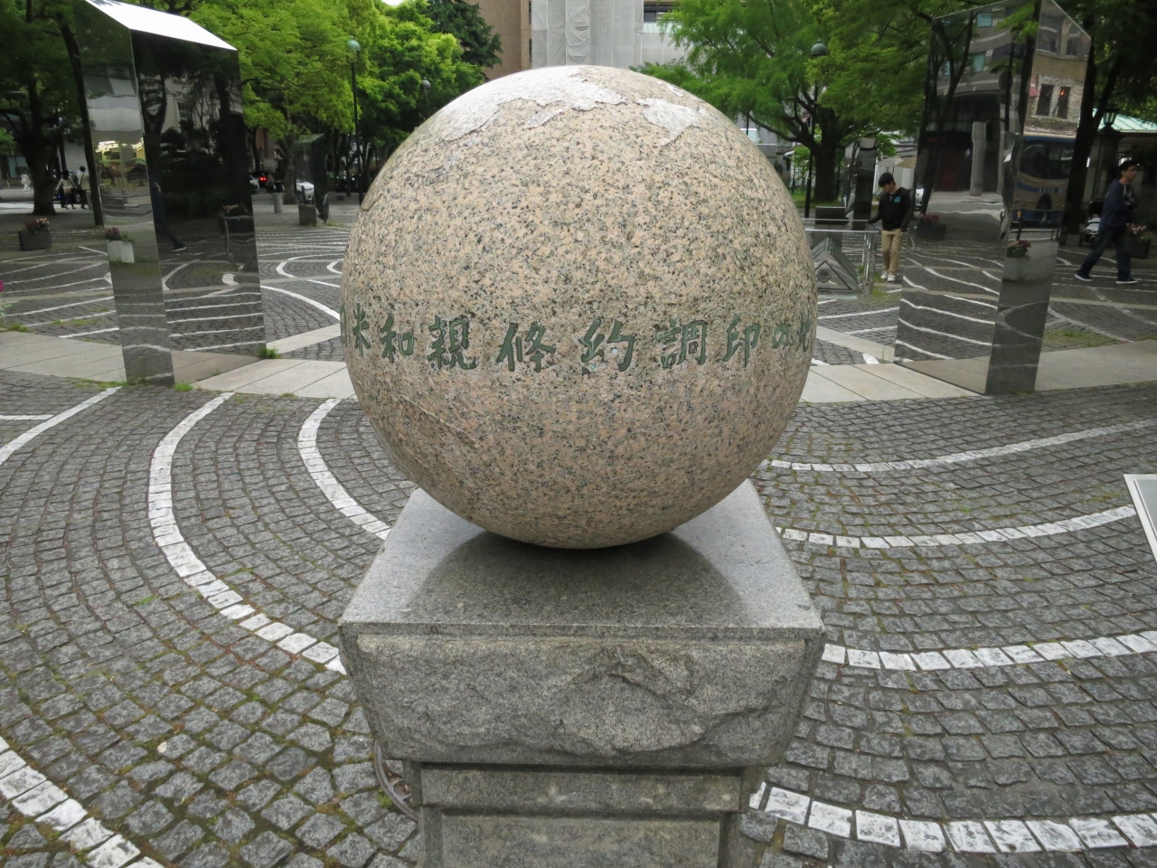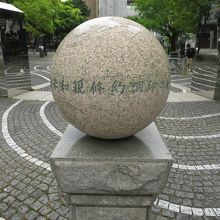横浜開港資料館に隣接する開港広場に「日米和親條約調印の地」と刻まれた球形の石碑があります。また広場の一角には、「日米和親条約締結の地」の記念碑も立っていました。安政元(1854)年、日米の代表が横浜村の海岸で会見し、和親条約を結びました。これが、日本の開国を促し、横浜市の誕生の遠因にもなったそうです。歴史的舞台となった応接所は、現在の神奈川県庁付近だそうです。横浜散策の際には寄って見たい、横浜や日本の歴史を感じられるスポットです。広場内には、「日米和親条約締結の地」の記念碑の他、「旧居留地90番地の大砲」や、「日米交流150周年記念植樹」「時計塔」「明治10年代に築造されたレンガ造りマンホールと下水管」などもあります。