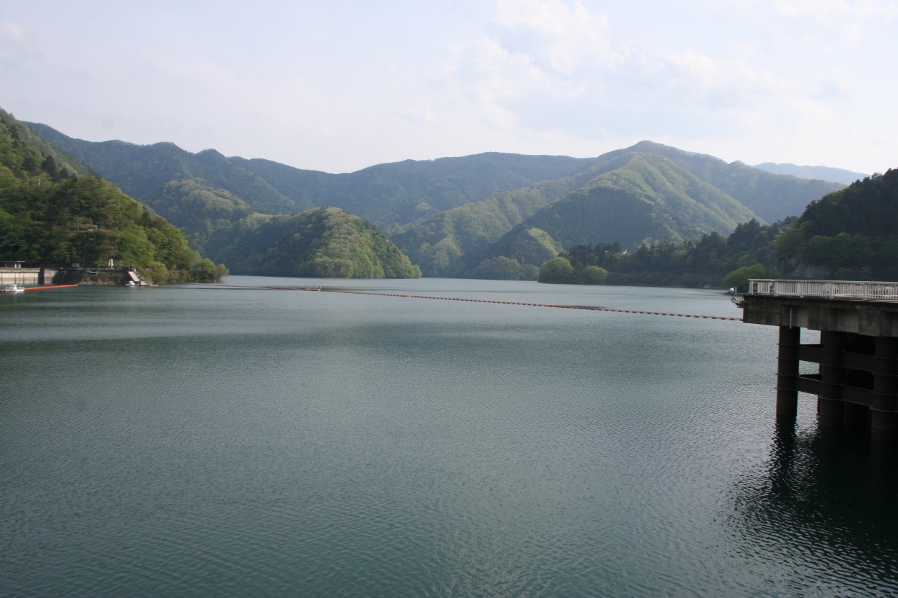 奥多摩ドライヴで行き着いた終着点がこの人造湖でした。息子と一緒に緑色の湖を覗き込むと、意外なくらい魚がたくさんいます。しばらくそれを眺めていました。